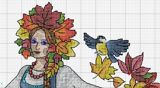 Schema punto croce SAGA PDF XSD STAGIONE AUTUNNO WOMAN cross stitch da stampare dmc pattern keeper markup autumn lady goddess seasons facile da stampare