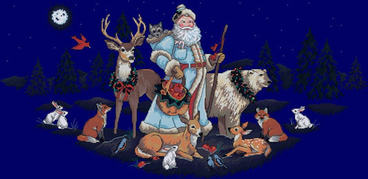 Schema punto croce SAGA PDF XSD WOODLAND SANTA and ANIMALS cross stitch natale orso coniglio lupo jpc pattern keeper WOODLAND tree skirt xmas facile da stampare