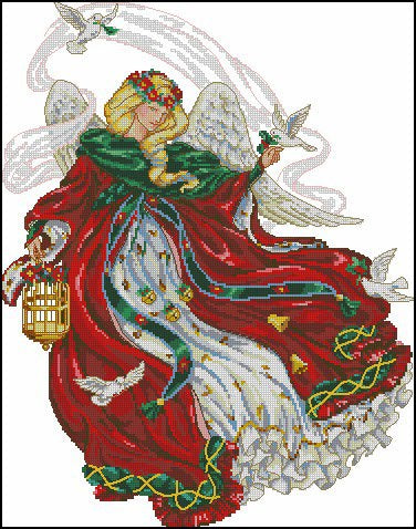 Schema punto croce SAGA PDF + XSD ADVENT ANGEL CHRISTMAS con colombe peace angel and doves cross stitch dmc pattern keeper dmc facile da stampare
