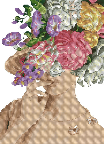 Schema punto croce SAGA PDF + XSD + PK DONNA con cappello fiorato WOMAN with flowered HAT cross stitch patterns stampabile