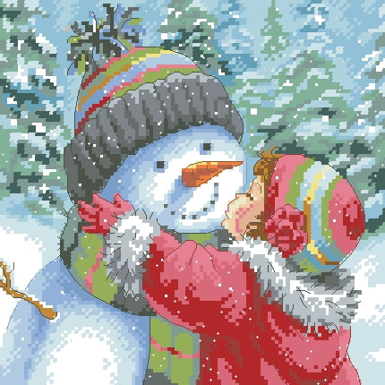 Schema punto croce SAGA PDF + XSD bacio al mio pupazzo neve Natale a kiss my SNOWMAN CHRISTMAS cross stitch dmc patterns facile da stampare