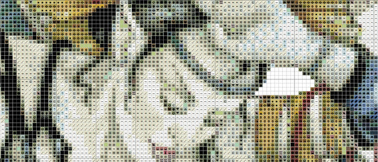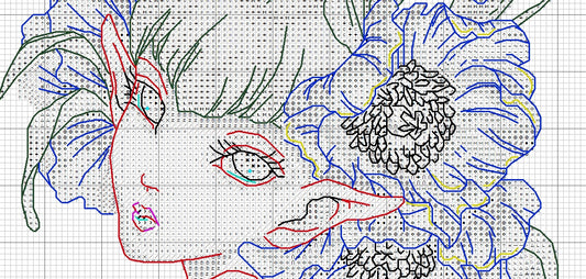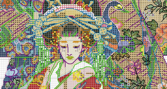 Schema punto croce SAGA PDF + XSD DONNA ORIENTALE GEISHA cross stitch dmc saga xsd pattern keeper markup lady clown ventaglio trucco facile da stampare