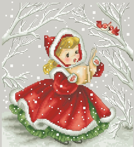 Schema punto croce SAGA PDF + XSD Bimba canta canzoni uccelli CHRISTMAS little GIRL song cross stitch pattern keeper dmc facile da stampare