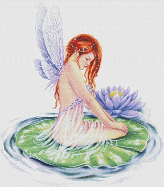 Schema punto croce SAGA PDF + XSD fata del lago POND waterlily FAIRY on leaf cross stitch spirit nature pattern keeper facile da stampare