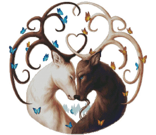Schema punto croce SAGA PDF + XSD DEER in LOVE Sant Valentine PK passion spring fairytale heart Cross stitch pattern keeper facile da stampare
