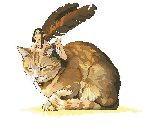 Schema punto croce SAGA PDF + XSD CAT FAIRY tale cross stitch elfa PK fiaba puppies micio puppy kitty ninfa pattern keeper facile da stampare