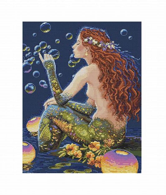 Schema punto croce SAGA PDF + XSD BUBBLES sirena Rossa Red HAIRED MERMAID cross stitch patter keeper mermaid and soap BUBBLES facile da stampare
