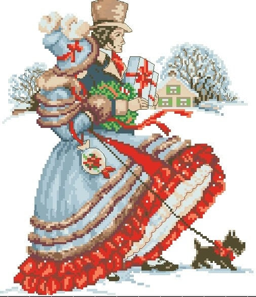Schema punto croce SAGA PDF + XSD CELTIC CHRISTMAS lady cross stitch woman xmas dama rinascimento medioevo magic night facile da stampare