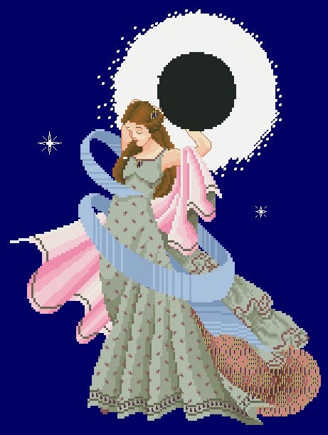 Schema punto croce SAGA PDF + XSD DONNA ECLISSI LUNA cross stitch patterns facile da stampare