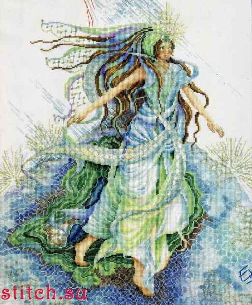 Schema punto croce SAGA PDF + XSD LANARTE goddess of the GLITTERING STONE sea cross stitch pattern keeper fantasy angel patterns facile da stampare