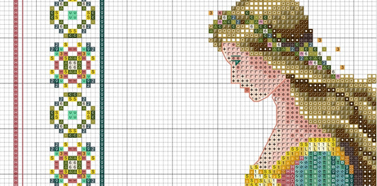 Schema punto croce SAGA PDF XSD SUMMER WOMAN cross stitch FANTASY seasons lady dmc pattern keeper markup goddess dama estate da stampare dmc patterns