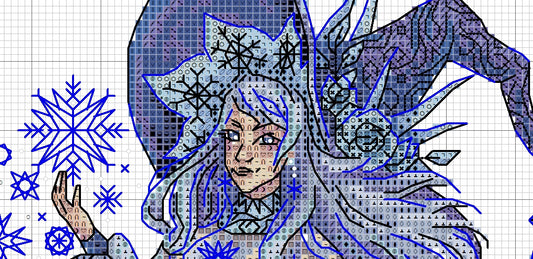 Schema punto croce SAGA PDF XSD THE WITCH OF JENUARY CHRISTMAS HALLOWEEN WINTER cross stitch fantasy pattern keeper dmc pk the witch january fairy facile da stampare