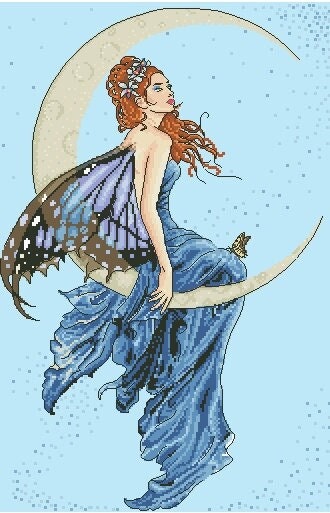 Schema punto croce SAGA PDF + XSD MOON FAIRY and butterfly cross stitch woman night dama rinascimento seasons medioevo facile da stampare