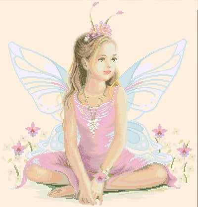 Schema punto croce SAGA PDF XSD FATA di marzo little fairy FAIRY cross stitch FANTASY saga dmc pattern keeper xsd baby shower nursery facile da stampare