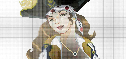 Schema punto croce SAGA PDF XSD BEAUTY PIRATE QUEEN woman cross stitch fantasy lady girl queen pattern keeper pk tesoro dama facile da stampare
