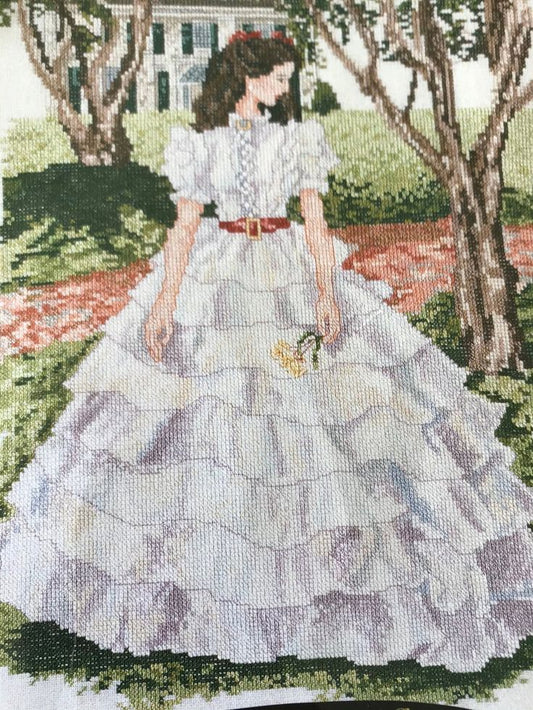 Schema punto croce SAGA PDF XSD beauty SPRING cross stitch SCARLETT in White Ruffles pattern keepr facile da stampare pk dmc patterns
